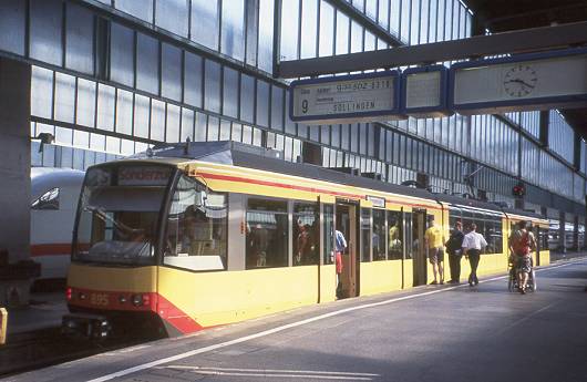 Karlsruher Stadtbahn in den Stuttgarter Glasschachteln (Funtreffen 8.5.2003)