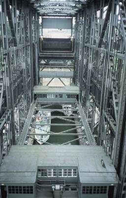 den Schiffs-Aufzug zu schleusen, auch unten keine Kähne, die