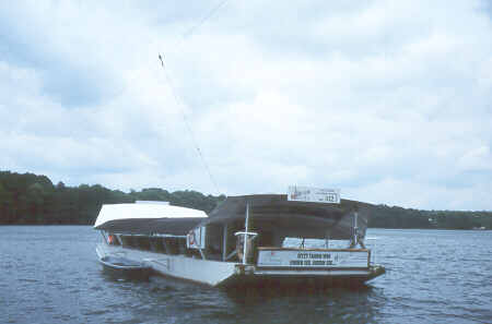 das Boot mit dem eigenartigen Aufbau. In der Mitte des Schiffs ist der